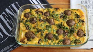 A veggie variation on my favorite holiday dish. Refrigerate overnight, and bake while you’re having your morning coffee.